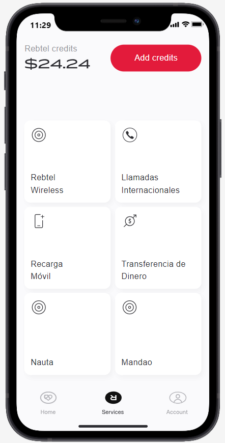 Im Bereich „Services“ tippen Sie auf Rebtel Wireless, um weitere Optionen zu öffnen.