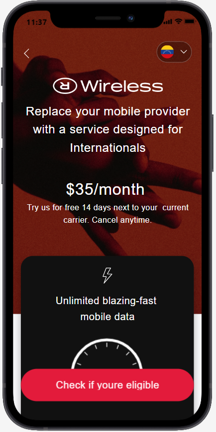 Stellen Sie sicher, dass Sie oben rechts auf dem Bildschirm das Land auswählen, in dem Sie Rebtel Wireless nutzen möchten. Dadurch wird die Kompatibilitätsprüfung an die jeweilige Region angepasst.